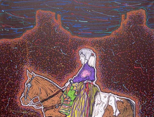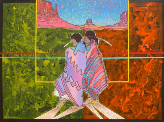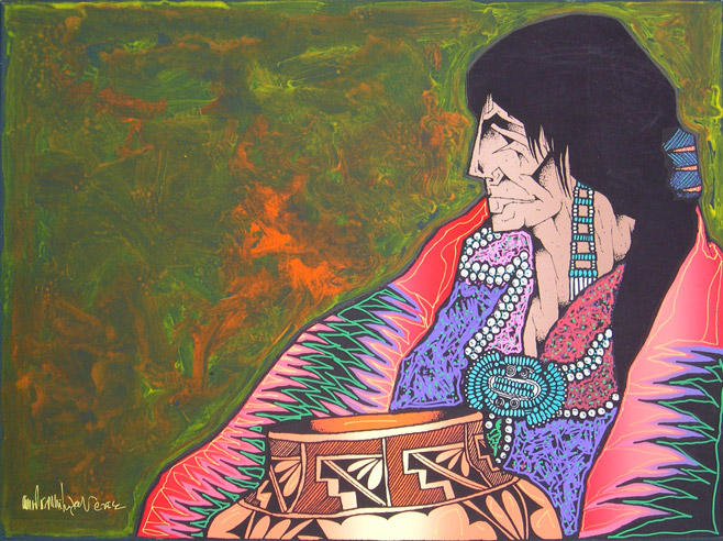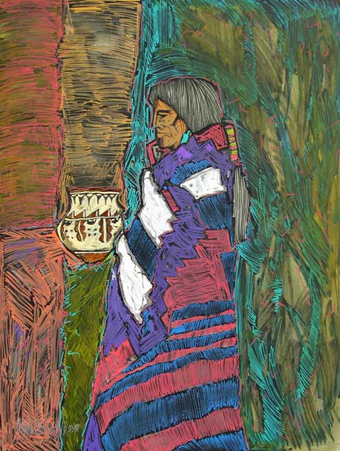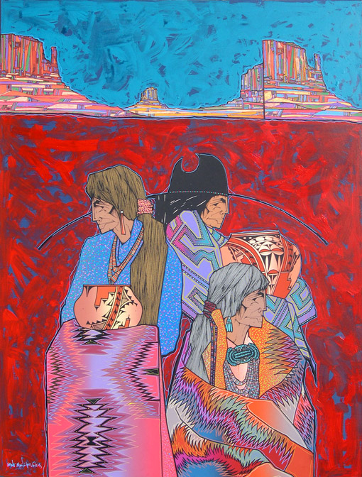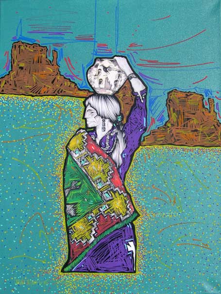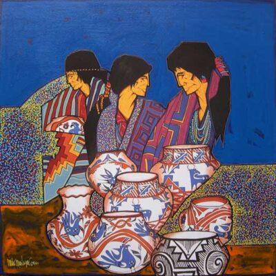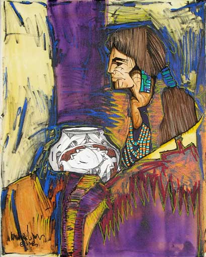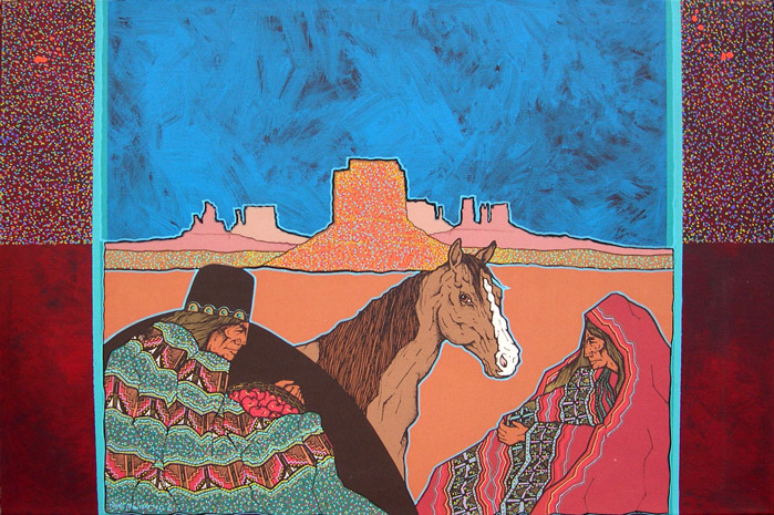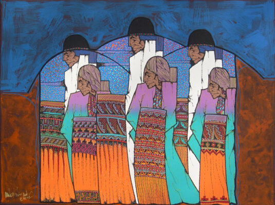 The land has inspired much of his art, including Canyon de Chelly, Spider Rock, Monument Valley, Enchanted Mesa, Acoma, and Black Mesa. These lands can be uncompromising, and his arts celebrates the strength of the Native people who live in harmony with their environment. Peña earned Bachelor’s and Master’s degrees in Art and Education at Texas A & I (now Texas A & M in Kingsville.) He has taught art for years and continues to teach at Alexander High School in Laredo, as well as serving as an adjunct professor in the College of Education at the University of Texas.