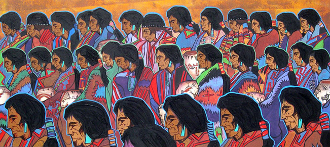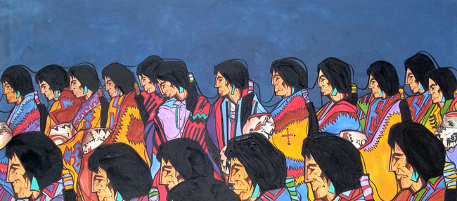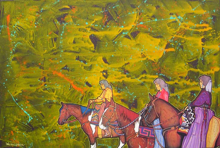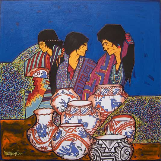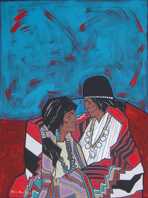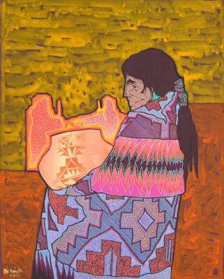 Amado Peña’s work is distinctively bold in color, form and dynamic composition. Art is his first love and he has been a successful artist for over 30 years, holding exhibitions all over the United States. Peña was born in Laredo, Texas of Mexican and Yaqui heritage and is recognized as an Artisan of the Pascua Yaqui Tribe of Arizona–a distinction of which he is particularly proud. He grew up in his father’s Mexican-American culture, but as he grew older he learned to incorporate the Pascua Yaqui cultural influences of his mother’s people into his art.