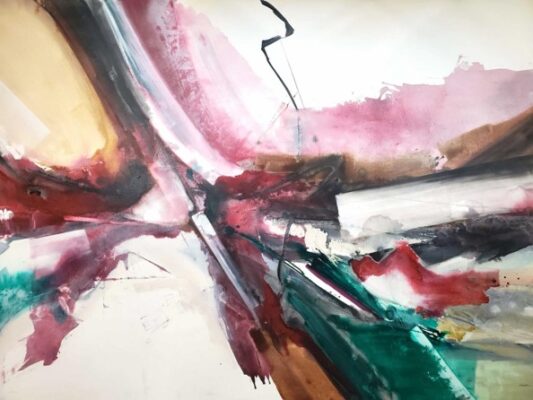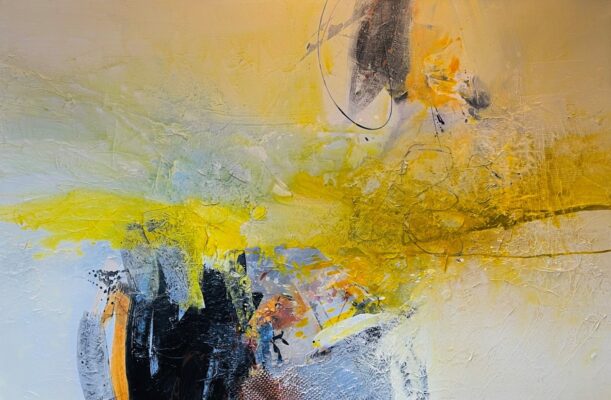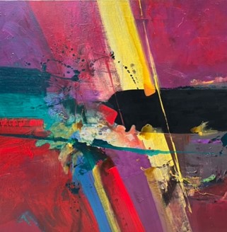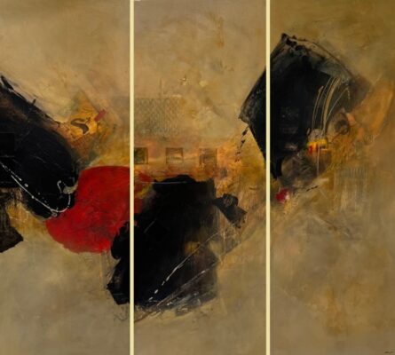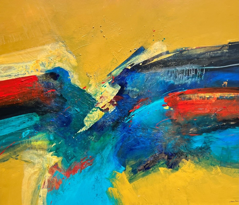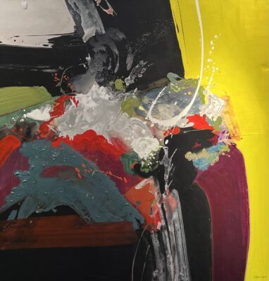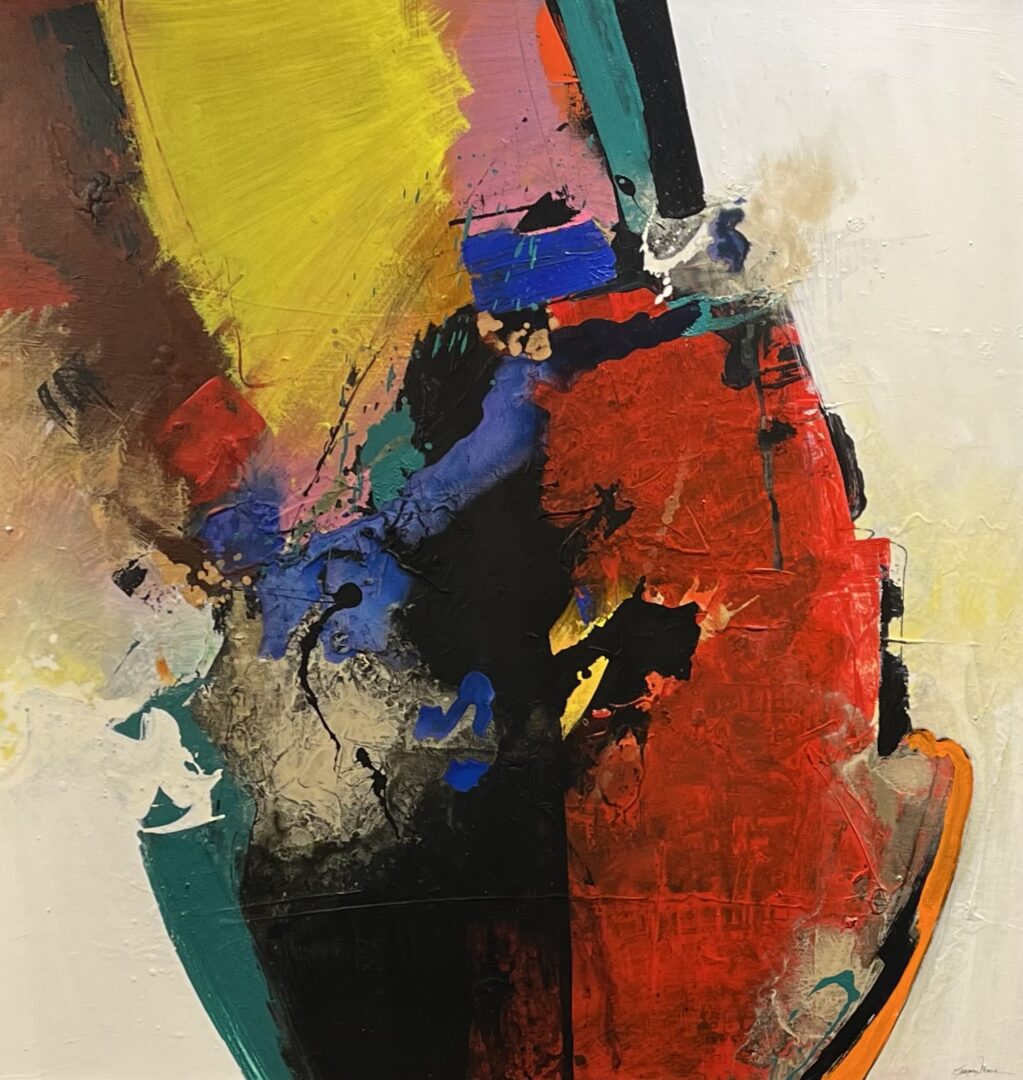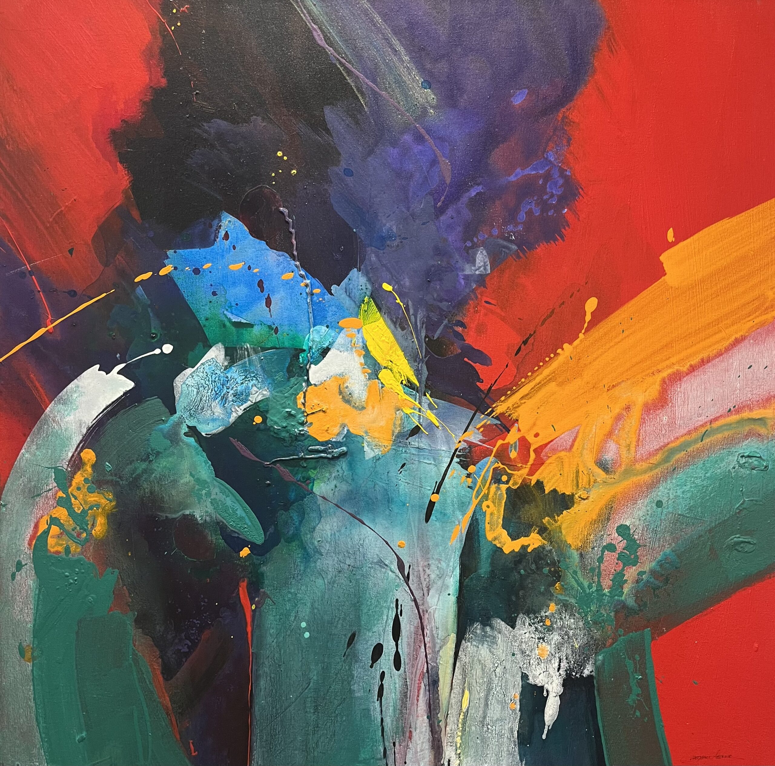 Gregory Deane’s abstraction integrates mixed media. “Including a photograph or words from a newspaper, bits of tissue paper or whatever might be at hand,” the artist reports, “I can evoke a grounding feeling of place and a sense of time, whether it’s an African jungle or a Chinese market.” Deane has been profoundly influenced by the masters of contemporary art, such as Franz Kline, Robert Rauschenberg, and the color work of Paul Jenkins. “The poetry of life is my greatest influence, though,” Deane says, and you see it in the symphonic expression of his paintings.