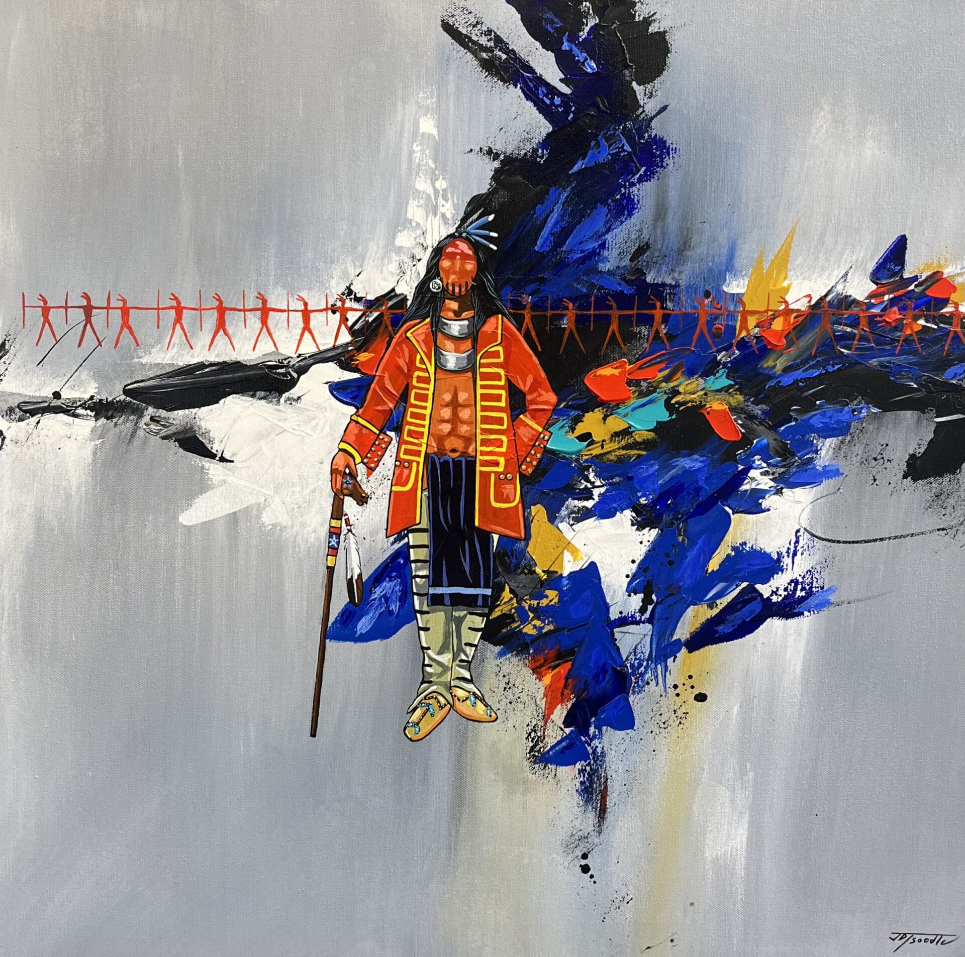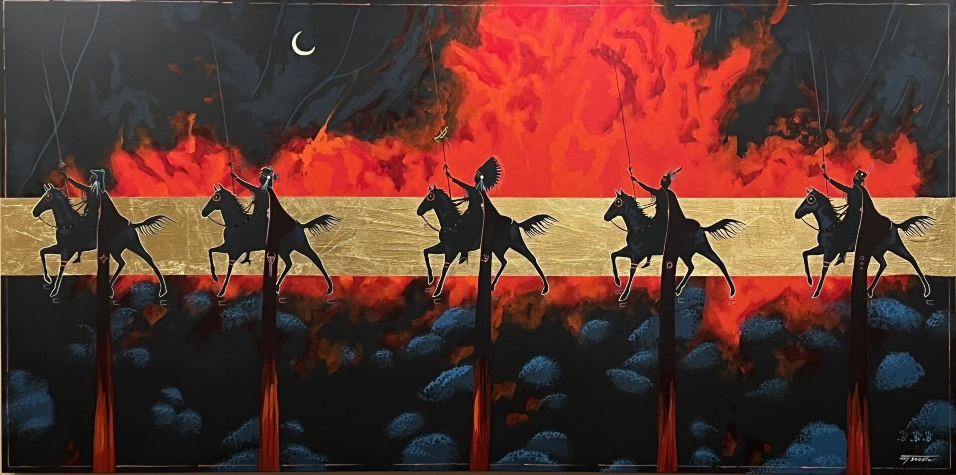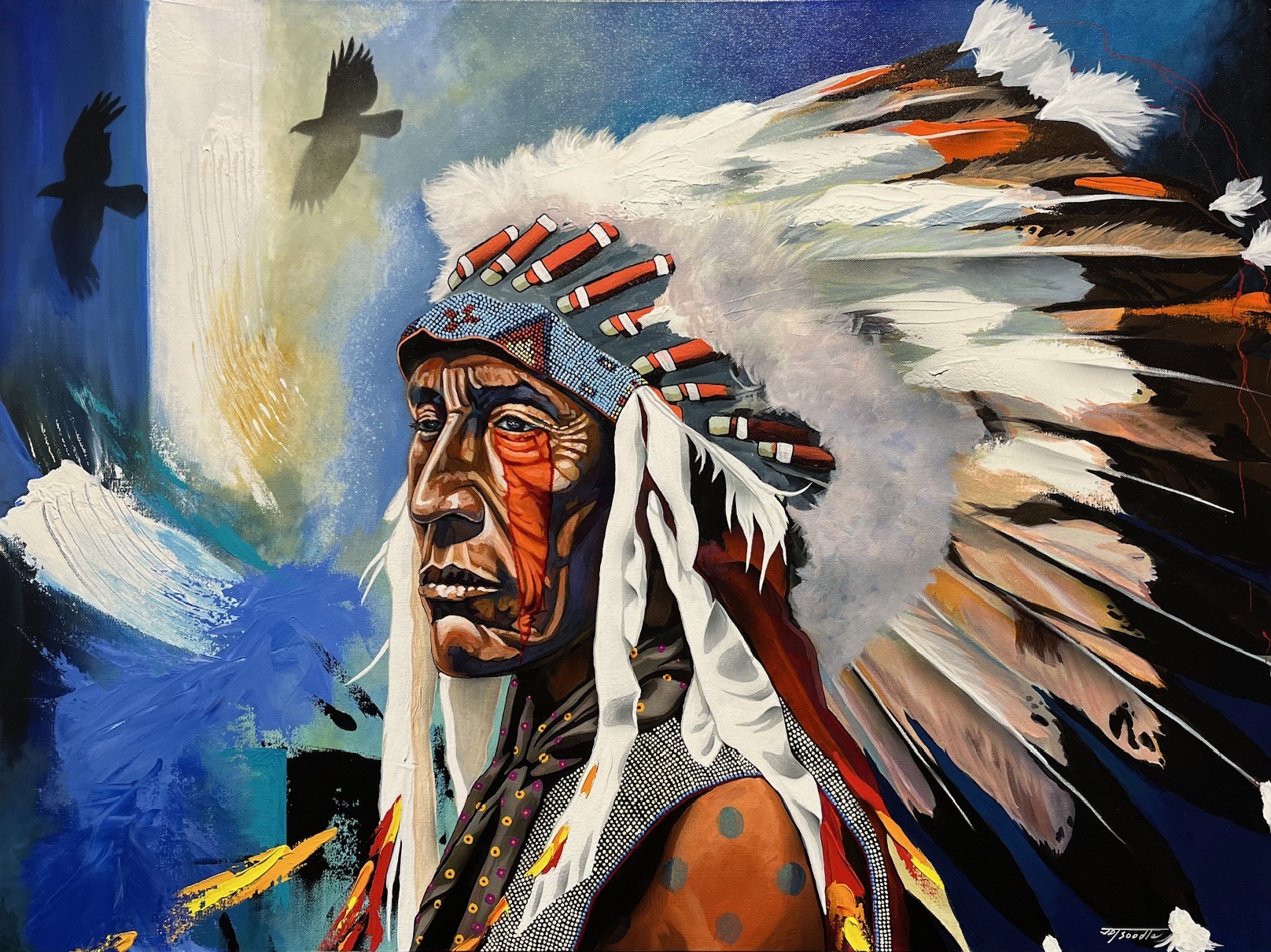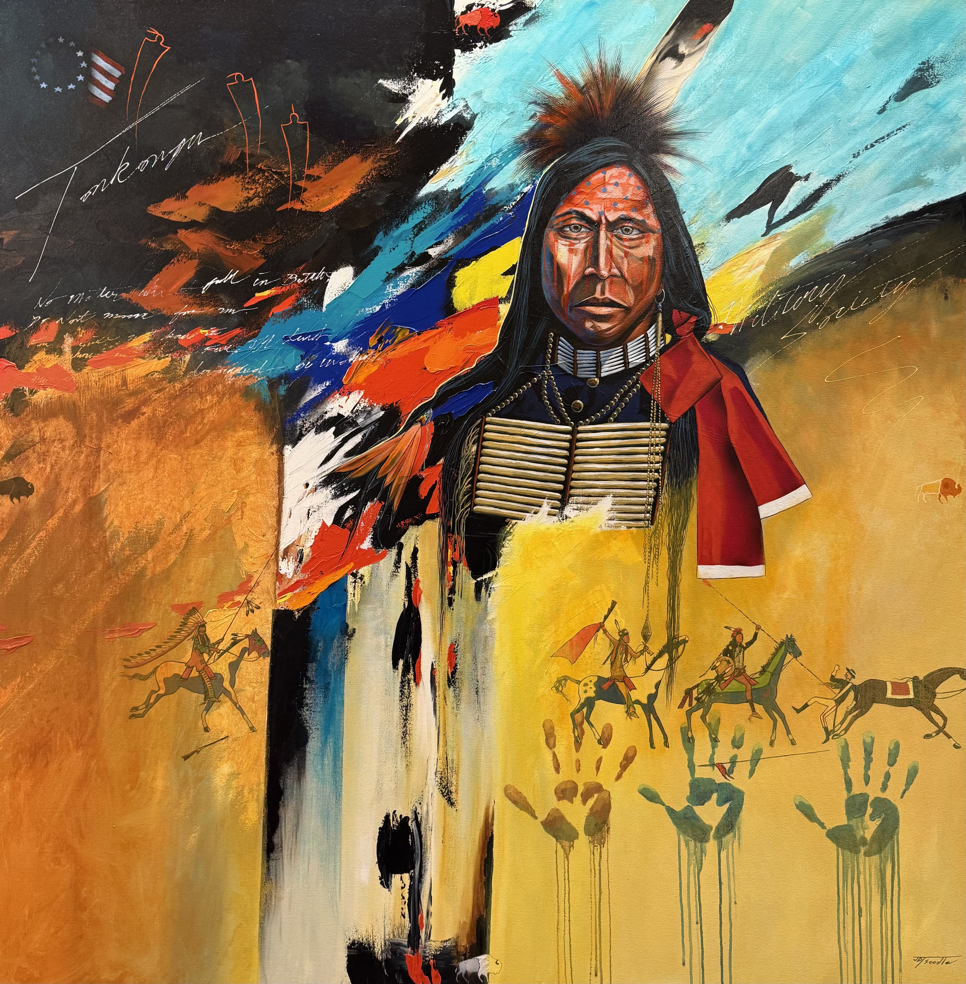 James Tsoodle believes that in any pursuit, one should strive for a sense of perfection. As a child, James experimented with various mediums, including pen and ink drawings, pencil, watercolor, and pastels. Today, he primarily works with acrylic on canvas. His artistic focus is on Native American Warriors from the Northern and Southern Plains. James believes that deep knowledge of the subject matter is essential for an artist to truly capture the essence of an image. He hopes that his dedication allows others to feel passion and power not only in the imagery but also in the pigment, flow, and composition of each painting.