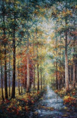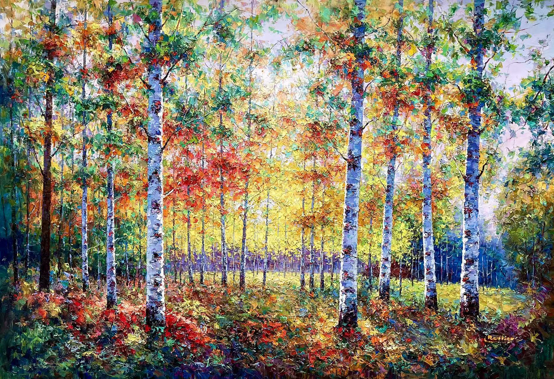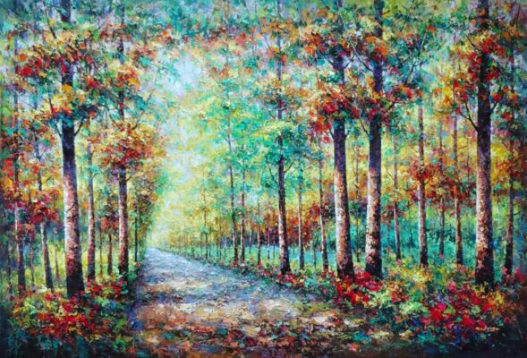 In 1999, Rodrigo graduated from Henan University of Education. Over the next few years, he worked at several arts related endeavors while developing his skills as a professional artist. In 2003, Rodrigo participated in his inaugural major art exhibition in Hong Kong, followed by a remarkable achievement the following year when he clinched first place at the Beijing Art Expo. Rodrigo’s artistic evolution led him to develop his distinctive style, characterized by nature scenes brought to life through intricate, heavily textured techniques, creating a visual depth reminiscent of a third dimension.