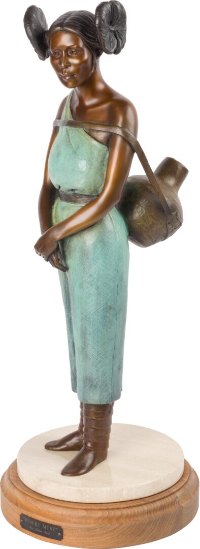 While her career as a professional sculptor began over twenty years ago, much of the recognition she has achieved comes from a body of work created after moving to the Southwest in 1985. It reflects her introduction to the native peoples of the area such as Navajo, Apache, Hopi, and Pueblo, as well as the wildlife and unique rock art. In the narrative tradition of American Art of the West, her work succeeds in capturing authentic aspects of the past and interpreting historic figures with convincing realism. Star York’s interest in people, animals and the environment is global, although the source of inspiration for a significant part of her work continues to come from Native American cultures. Another portion of her inspiration comes from raising and training quarter horses which is manifested in her series of sculptures depicting horses. Their portrayal in her hands is spirited, articulate, and lyrical; evidence of the empathy she feels toward her subjects.